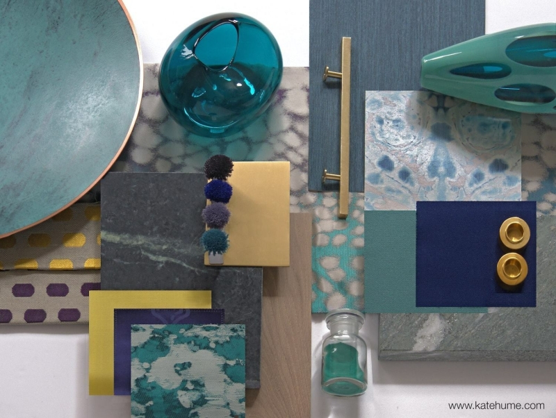 Met speciale dank aan Aafke Wolterick, officemanager van onze vakcollega Kate Hume, voor het beschikbaar stellen van hun prachtige moodboard met de toegepaste materialen en kleuren van een project in Duitsland. In onze ogen was er geen betere concrete vertaling deze twee schilderijen naar dit basisconcept voor dit kleurrijke interieurontwerp. Wilt u de gehele fotoshoot zien van Elbphilhamonie in Hamburg kijk dan op: www.katehume.com.